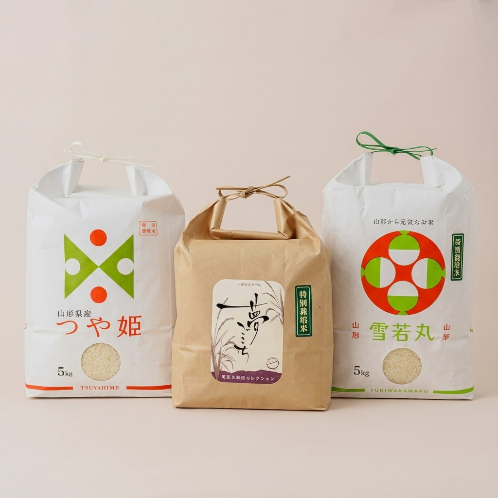 - 内容:つや姫、雪若丸、はえぬき(各3kg)、ゆうだい21、夢ごこち(各2kg)